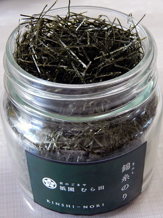 この日のためにとっておいた,いただき物の「祇園 むら田」錦糸海苔.ごまが特に有名だけれども,海苔の香りと食感も素晴らしい.
