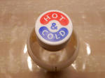 ところで,キャップの記述は何のため?また,「容器のまま凍らせないで下さい」とか「開栓後は冷蔵庫に入れ 速やかにお飲み下さい」の記述もありおもしろい.これはお湯のはず.