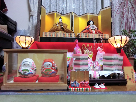 長女が生まれた時に,配偶者の実家からいただいたもの.左手前の「加賀姫だるま?」は,次女が生まれた時に.