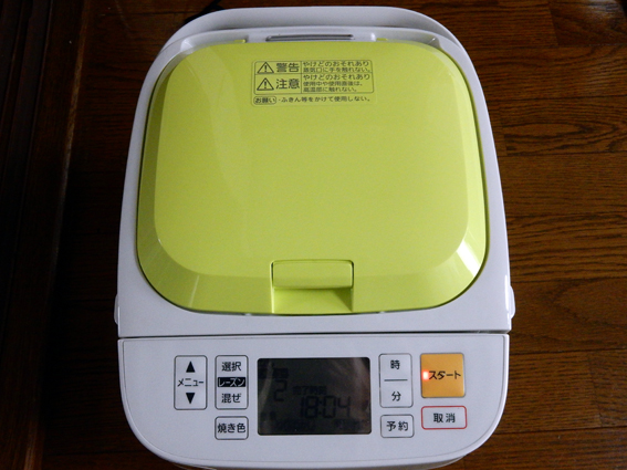 子ども達が母の日用に贈ったホームベーカリーで,配偶者が初めて焼いたパン.