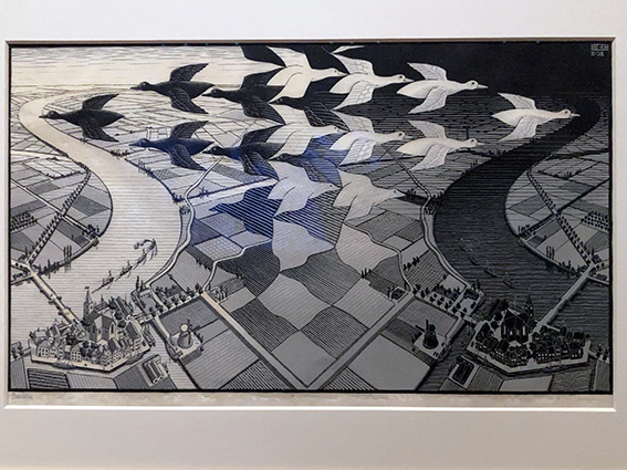 豊田市美術館で開催中の「エッシャー 不思議のヒミツ」に配偶者を誘おうと思っていたら,先に誘われてしまった.こんなことが起こるのは極めて珍しいこと.9月下旬になろうというのにこの猛暑.ひょっとしたらこのせいか.