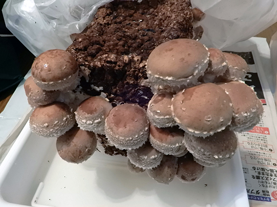 シイタケの成長は何と早いことか.写真を撮った後,購入元の永島農園さんのFB動画を参考に混んでいるところを間引き.さて,今夜はどう調理して食べようか.