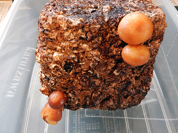 雨が適度な湿気を与えたのか,今日気がつくと小さなシイタケが生えていた.大切に育てよう.