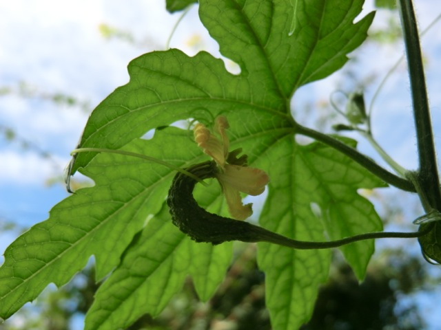 雌花はまだかと,騷いでいましたが,今朝見るといつの間にか,小さな実がなっていました.