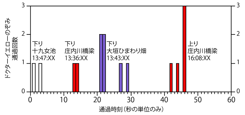 ドクターイエローは,乗客の乗り降りなどによる,駅出発時間の乱れがないことは,通常ののぞみとは異なるけれど,それにしても運行途中の各ポイントで,これほどまでに正確とは.恐れ入りました.
