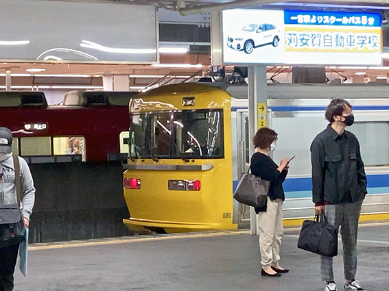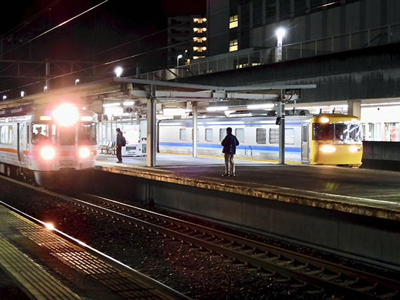 それでも,尾張一宮駅では2人がホームで待っておられました.どこで,情報を手に入れたのか,本物の撮り鉄さんはすごい.