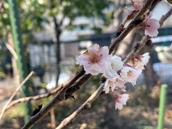 途中で,子福桜を訪れてみた.この桜2度咲きというか,10月頃から春までほぼ咲いている.今シーズンは初めて見た.ちょうど2度咲きの間なのか,チラホラ咲いているのみだったが,出会えて嬉しい.