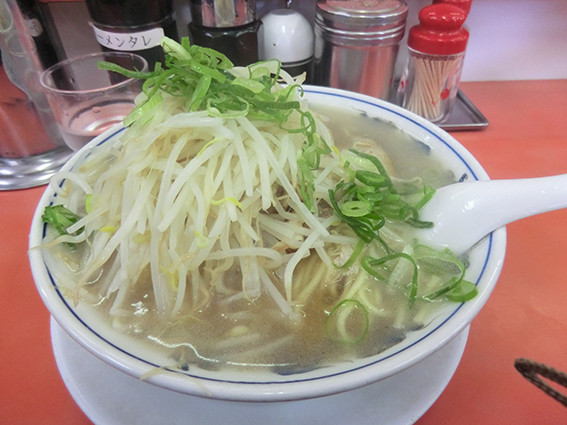 写真は今回食べた普通のラーメン.隣の人は,大盛りでしかも野菜多めを注文していた.
