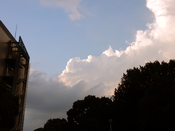 暮れゆく西の空には,入道雲.