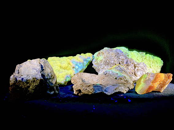 多環芳香族分子が結晶化したものだそうで、紫外線をあてると、綺麗な蛍光を発する(左の写真)。