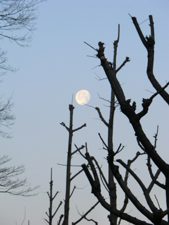 早起きしないと見られない,西の空の十七夜月が美しい.