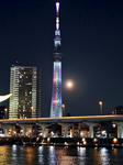 もっと遠方から,スカイツリーとのコラボを撮したかったけれど,すぐに思いつく月と一緒に見通せるところはこのあたり.(18400 歩)