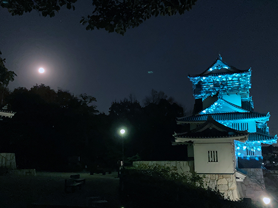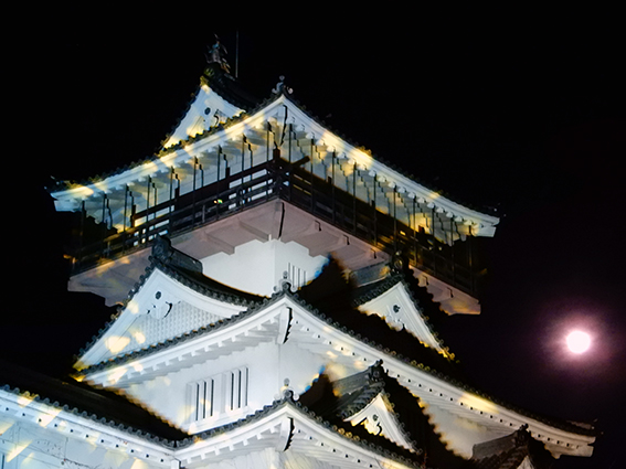 今日は,十六夜の月と岩崎城の共演を撮るために,夜の散歩.