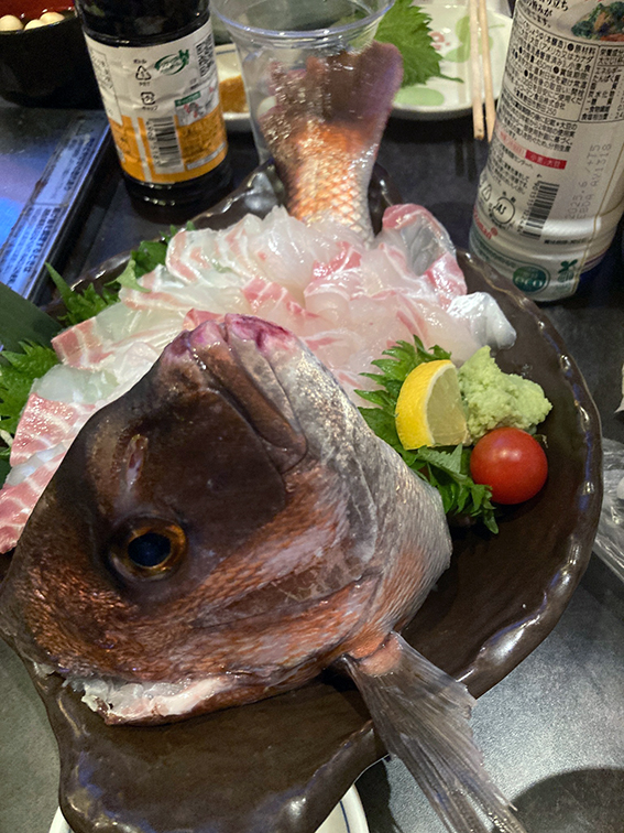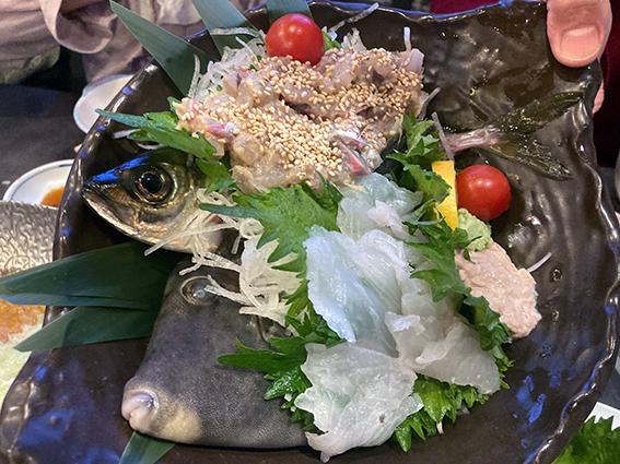 釣った魚をその場で調理してもらい堪能.(7000 歩)