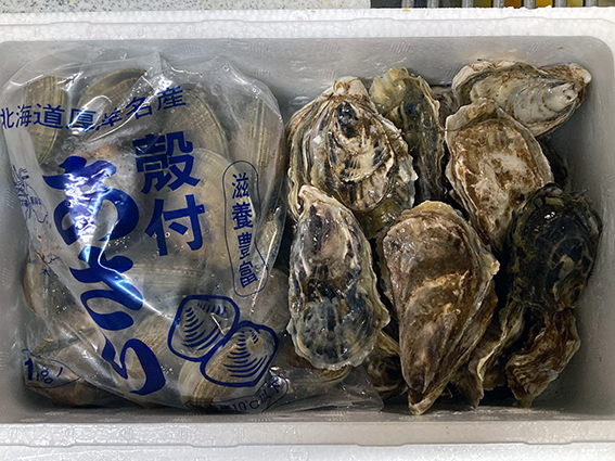 北海道の友達より,厚岸の牡蠣とアサリが届いた.