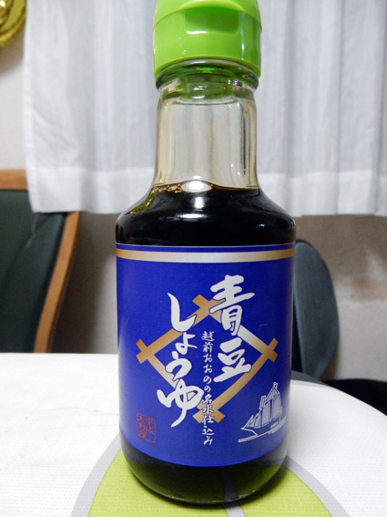 娘が買ってきてくれた,越前大野産の青豆しょうゆ.豆腐の水分に負けない味.今年の冷や奴は,專らこれで.(3700)