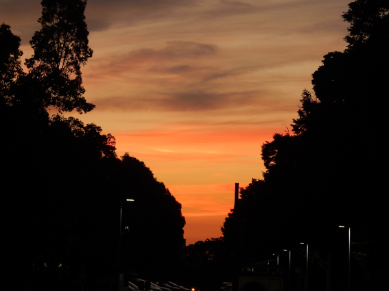 酷暑が空に映ったような夕焼けでした.(万歩計はバッテリ切れで,歩数は不明)