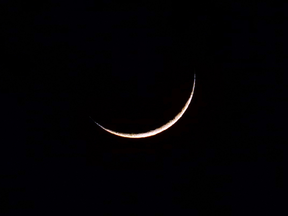 西の空に,美しい繊月が見られた大晦日.