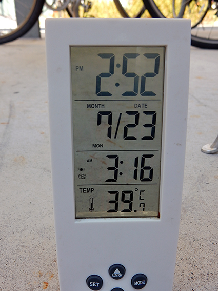 講義前に,風通しの良い日影の駐輪場にデジタル温度計を置いてみた.