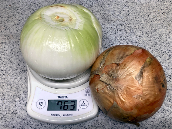 ちなみに,ネットで調べると,スーパーでよく見かけるLサイズは1玉 200 g程度とのこと.