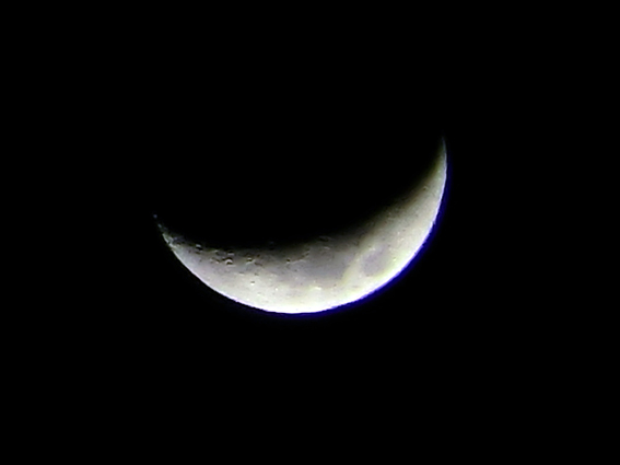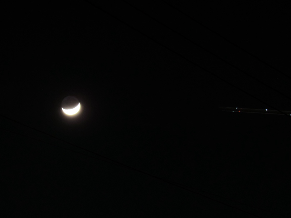 帰り道,綺麗な夕月が西の空に.走って帰って,何とか撮すことができました.(8200)