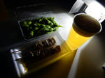 主なつまみは,「ねぎま」ならぬ「さぼま」.春日井市特産のサボテンと豚肉の串.