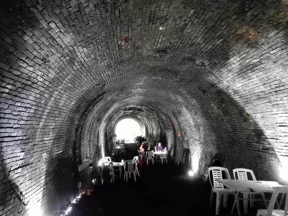 外より明らかに冷たいトンネル内で,ビールを楽しみました.(7000)