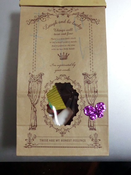 散歩に出かけている間に,女性陣三代がつくってくれたバレンタインチョコ,右のチョコは,オマケだよと娘の娘から.(万歩計を忘れ歩数は不明)