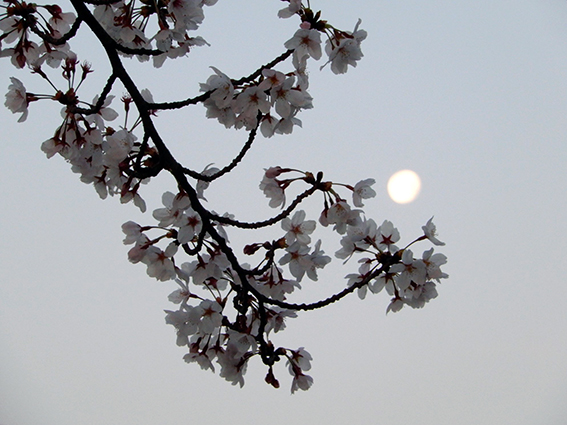 昨夜は立待月 月の出が次第に遅くなり,青空を背景とした月と桜を撮ることを諦めていたけれど,明け方だったらより好条件であることに気付いた そこで,朝5時.朝寝坊の私にしては,とんでもない早起きをしてみた 公園にはすでに犬の散歩をしている人が何人か 皆早起きなんだー.気分壮快.(8000)