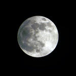 左は18:09分に撮影(残念ながら最大食の時間には叢雲).比較のため,右に10月31日の満月.今夜のほうが,なんとなく左上あたりが暗くなっている気がする.影になる位置としては矛盾しないようだ.(7200)
