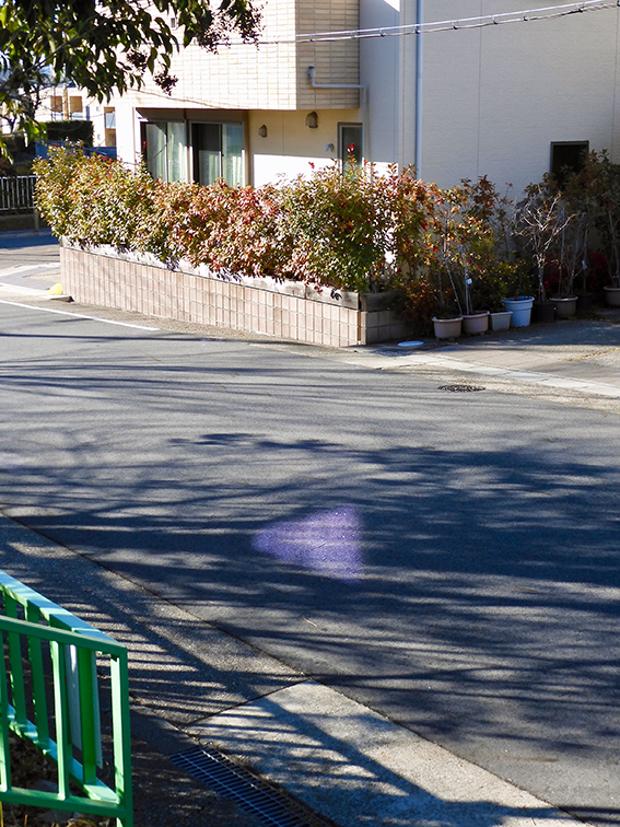 窓ガラスからの反射光(偏光?)と路面の素材が織りなす美。