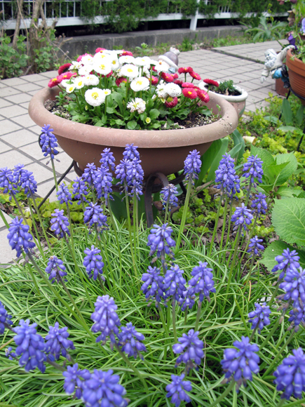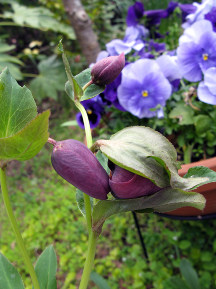 出かける前に,庭の桜が花を付けているのに気付き,配偶者に写真を頼んだら,おまけに庭の花々も何枚か撮ってくれました.