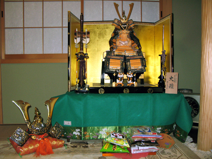 ところで,この武者飾りは配偶者の両親から長男の初節句にいただいたもので,23回目の登場です.兜に我が家の家紋「桔梗」を付けてもらったのですが,写真ではよく見えませんね.