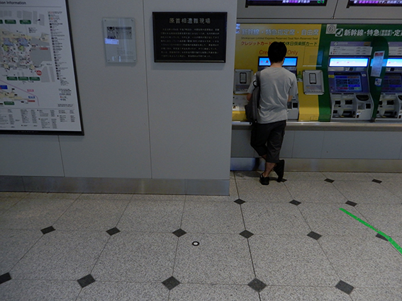 ・構内中央通路,そこは何度も歩いているが,今回初めて気がついた.浜口雄幸首相遭難の現場.そういえば,原敬首相遭難現場もあるはずとネット検索.丸の内南口の現場は,説明プレートがないとなかなか気がつかない(6700歩).