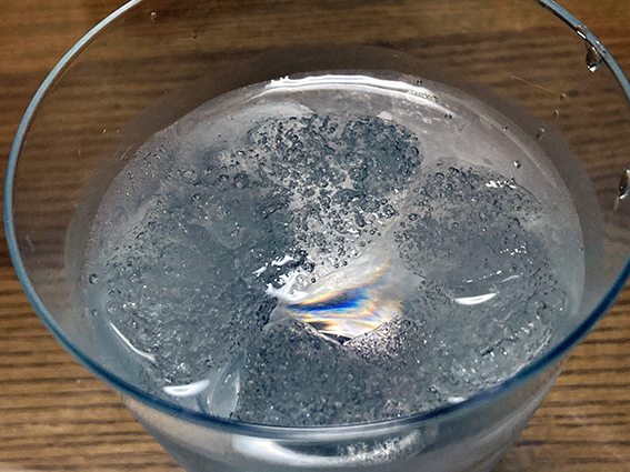 気泡をたくさん含んでいるので,溶けるとき音がするかと思ったが,南極の氷の時とは異なり,気泡がはじける音は全く聞こえなかった.