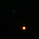 やはり火星は赤い. その左上に写っているのは何だろう.ゴーストかとも思ったけれど位置を変えてもズームし直しても同様に写るので,実際の星らしい.しかし,調べてもそれが何なのか判らない.