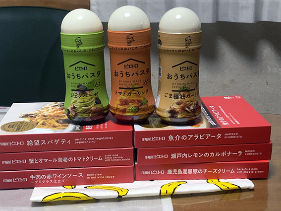 もうひとつはパスタソースセット. コロナ禍がおさまるまでは,外食はせず昼食は家でというメッセージか.