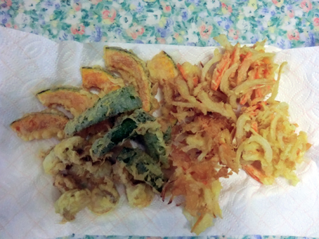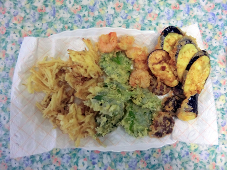 明日締め切りの仕事を,なんとか午前中に完了したので,午後,散歩がてら食材のホタテ,紫蘇の葉,ピーマン,椎茸,カボチャ,大根,筍やアサリなどを買いに出かける.その他,冷蔵庫にあった,海老,茄子,人参やタマネギなどをあわせて,作ってみました.