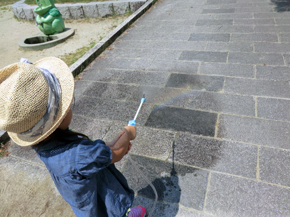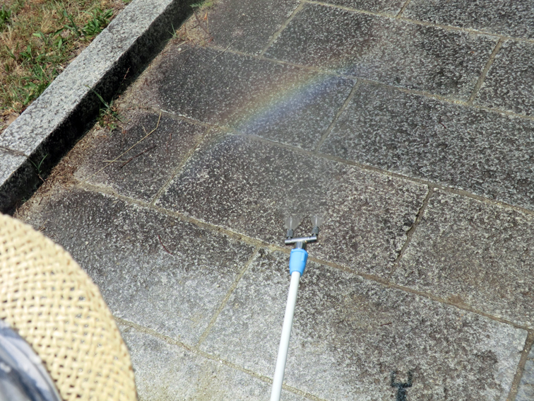 オチビちゃんと遊ぼうと(娘に言わせると遊んでもらおうと),ちょうど一年前に購入した虹発生器.昨年の夏は,週末がズーッと天候不順で出番はなし.