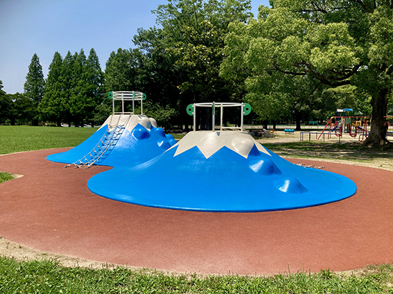 昔つくられた多くのシンプルな富士山滑り台とは異なり,小さい子どもへの安全を配慮してか,なんとなく今様っぽい.