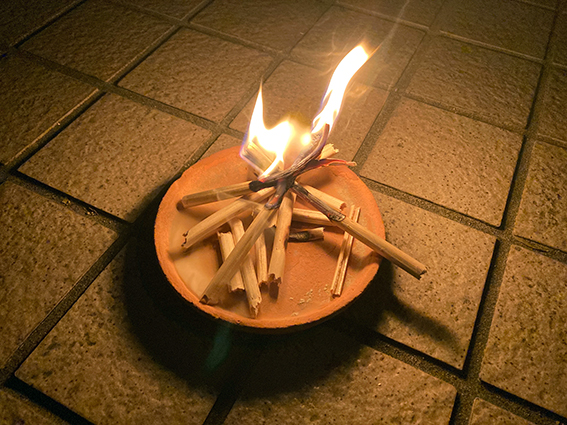 一般に迎え火は13日のようだけれど,わが家では棚経が今日だったので,迎え火をたいてご先祖さまをお迎えした.