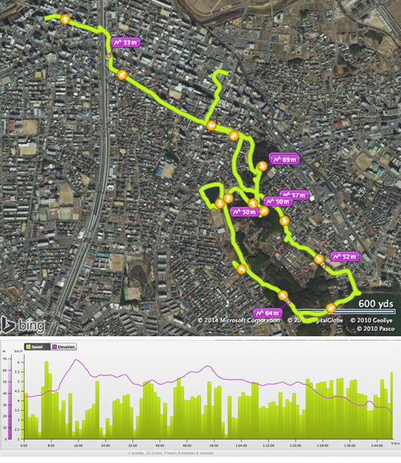 ガイドブックによるコースは,地下鉄「平針駅」がスタートとゴールの周回コース.ただ,距離が 約 4 kmと短めなことと,途中が一部通行止めになっていたことで,散歩を地下鉄「原駅」まで延長.(17400)