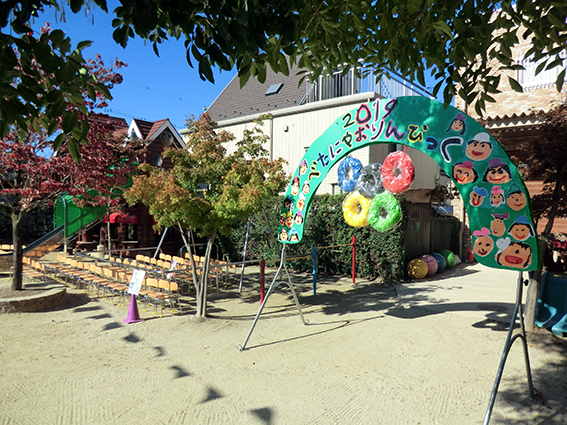 会場は園庭になり年長さんだけのプログラムだったけれど,とにかく,これまでの3日間忘れていた青空を集めたような空のもとの開催でした.