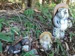 探して戻ってみると先ほどのお狸様の前に落ちていた.拾おうとして近づいてみると,先ほどは気付かなかった小さなお狸様が2匹居る.