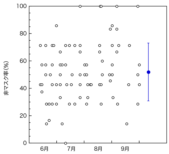 10月に入ったので,地下鉄車内での非マスク率(%)を更新.