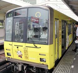 東山公園駅で地下鉄に乗り,反対のホームを見ると見慣れぬ黄色のラッピング電車が発車するところでした.