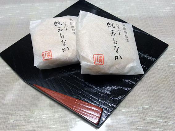 氷室まんじゅうの代わりに,森八の蛇玉もなか.