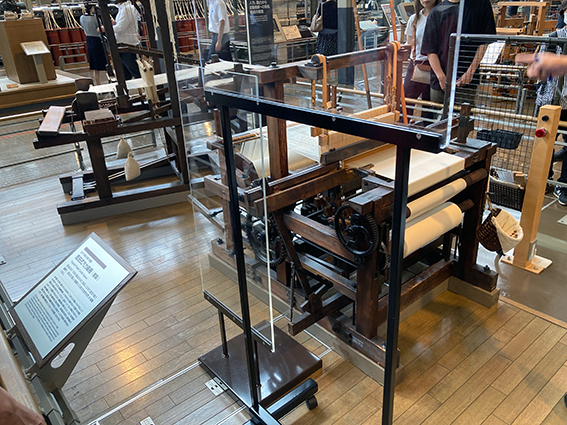「豊田式木製人力織機」や「豊田式汽力織機」をはじめとする実演は,原理がわかって非常におもしろかった.