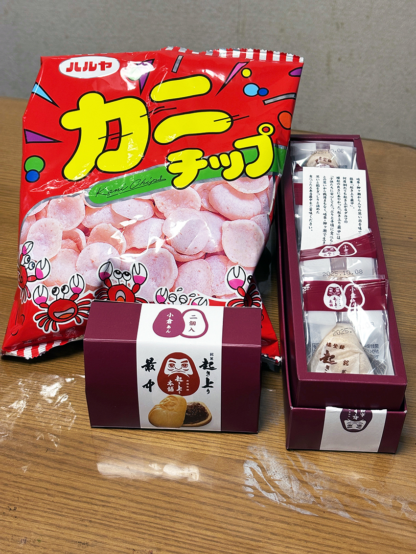 カニチップ:岐阜市近島で1963年創業,現在は岐南町に工場があるハル屋のお菓子.昔はよく食べたけれど,最近は見かけることがなかった.なつかしくなって飛びついた.