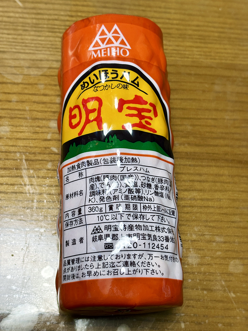 明宝ハム:よく似た名前の明方ハムもあるが,両者の源流は,1953年に奥美濃旧奥明方村で作り始められた,一村一品の走りのような高級プレスハム.私が生まれるよりも少し前の昔に,奥美濃でハムがつくられたとは驚き.